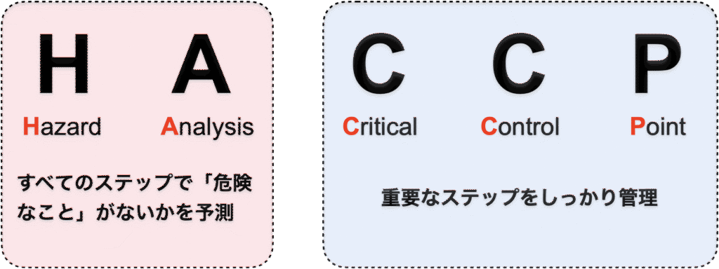 日本語では”危害要因分析・重要管理点”と訳されますが、全然意味が分かりませんね。このページでは、できる限り分かりやすく、要点を絞って解説します。